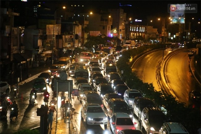 Cũng chính bởi đoạn ngập sâu này đã khiến các phương tiện chôn chân tại chỗ, gây ra cảnh kẹt xe hàng km kéo dài đến tận đêm. |