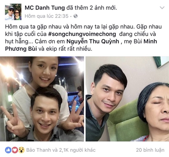 Còn MC Danh Tùng - người vào vai Tùng trong phim thì không giấu được sự hụt hẫng khi bộ phim đã khép lại. Chia sẻ ảnh chụp chung với Thu Quỳnh và NS Minh Phương - người vào vai bà Điều, nam diễn viên không quên gửi lời cảm ơn đến hai người bạn diễn của mình.