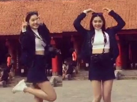 Ai cũng choáng khi đàn em kế nhiệm Ngọc Trinh mặc váy ngắn cũn cỡn nhảy nhót ở chốn linh thiêng