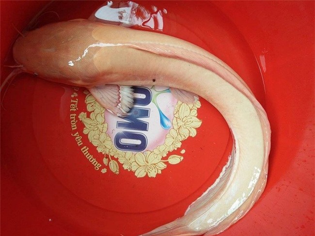 Ngay sau đó, anh Ái về nhà lấy lưới ra thả bắt cá mang về nuôi trong bể nước. Theo anh Ái, con cá trê có màu vàng óng, chiều dài 65 cm, có 8 râu, trọng lượng 1,8 kg. Ngoài màu sắc, nhìn bề ngoài cá có hình thù giống như những loại cá trê đen thông thường.