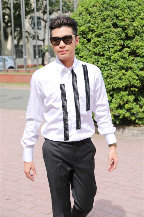 Noo Phước Thịnh là nam huấn luyện viên duy nhất trên ghế nóng. Khác với 3 đồng nghiệp nữ, anh ăn mặc ít cầu kỳ hơn với áo sơ mi và quần tây.