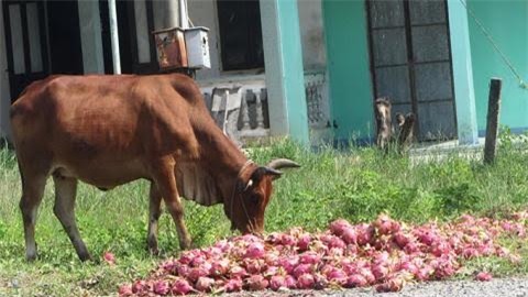 Người nông dân liên tục phải đổ nông sản cho bò ăn |
