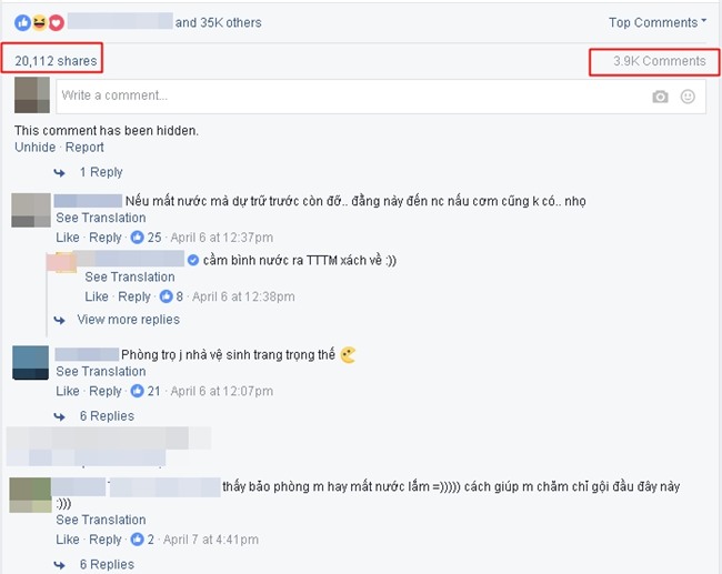 Hơn hai mươi nghìn lượt chia sẻ, và gần bốn nghìn bình luận của "cư dân mạng"
