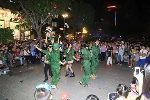 Bạn Nguyễn Ngọc Nữ (23 tuổi, ngụ quận Gò Vấp, TP HCM) - người trực tiếp chứng kiến cảnh tượng trên - cho biết: "Tôi đang cùng bạn bè tham quan thì thấy mọi người tụ tập rất đông. Đến nơi, tôi thấy hơn 5 bạn nam, nữ nhảy múa, gây náo loạn khu phố".