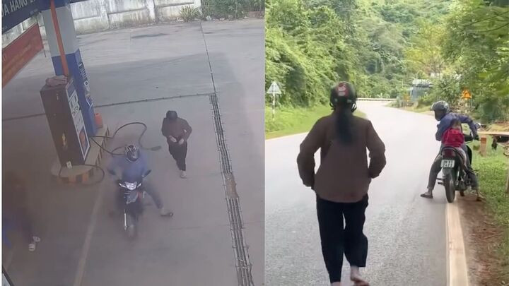 Clip đang được dân mạng đua nhau chia sẻ ghi lại cảnh người chồng chạy xe máy đèo vợ con vào cây xăng. Khi đổ xăng xong, vợ vừa đặt được con lên xe thì chồng lập tức phóng đi. Nhân viên cây xăng phải lấy xe máy để chở người vợ đuổi theo chồng con.