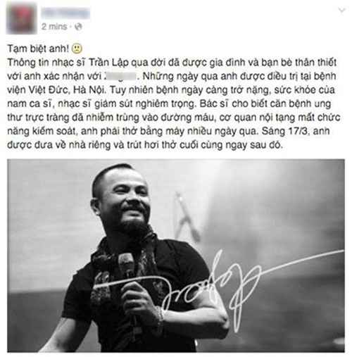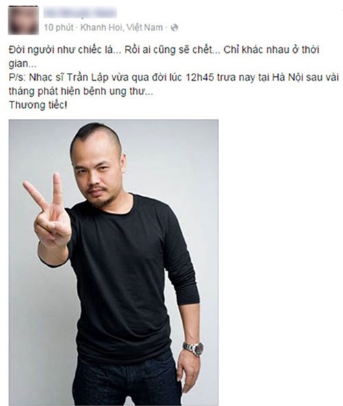 sau khi thông tin nhạc sĩ Trần Lập qua đời được đăng tải trên mặt báo,