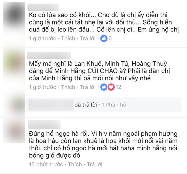 Sự việc Minh Hằng bị chèn ép bởi một nhân vật tên H đã râm ran vài ngày nay tuy nhiên khi nữ diễn viên công khai nói ra đích danh khán giả vẫn vô cùng bất ngờ. Khắp nơi trên mạng xã hội người ta đều bàn tán về câu chuyện mà Minh hằng chia sẻ. Đã có rất nhiều những ý kiến đa chiều: Người tiếc nuối, kẻ bình phẩm, thậm chí có người còn cho rằng đây là chiêu trò PR...