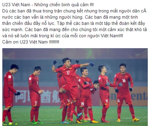 kết thúc, dân mạng gửi lời động viên đến đội tuyển U23 Việt Nam.