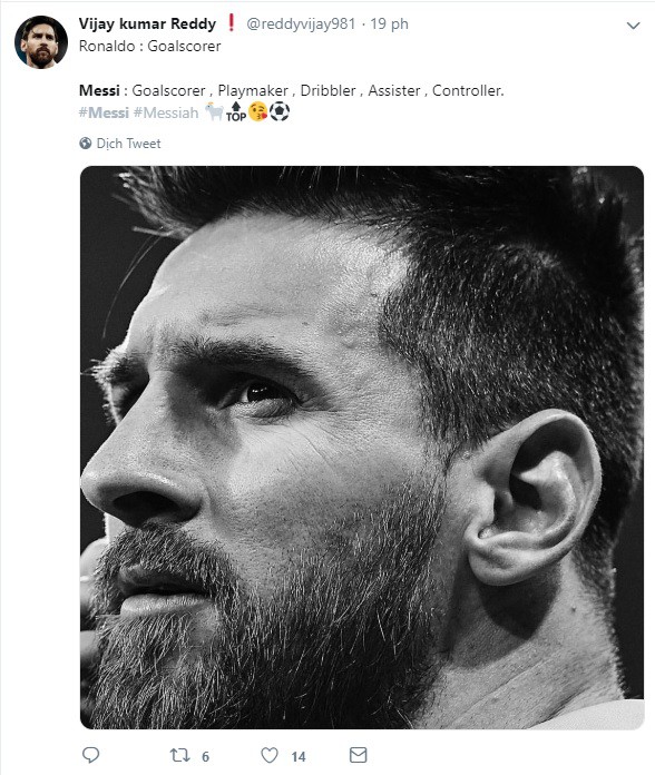 Những gì Messi đã làm được diễn tả bằng từ "siêu đẳng". Và trong ngày Messi tỏa sáng rực rỡ giúp Barca đi tiếp, các CĐV trên toàn thế giới lại được dịp so sánh anh với Ronaldo. Nhiều người tỏ ra "mệt mỏi" vì phải chọn xem giữa Messi và Ronaldo ai mới thực sự là G.O.A.T (viết tắt của Greatest Of All Time - tạm dịch "cầu thủ vĩ đại nhất lịch sử bóng đá").