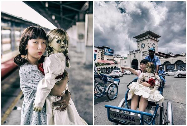 Trang Hý làm khuynh đảo cộng đồng mạng với bộ ảnh cùng búp bê ma đi khắp thế gian gây sốt trước đó.
