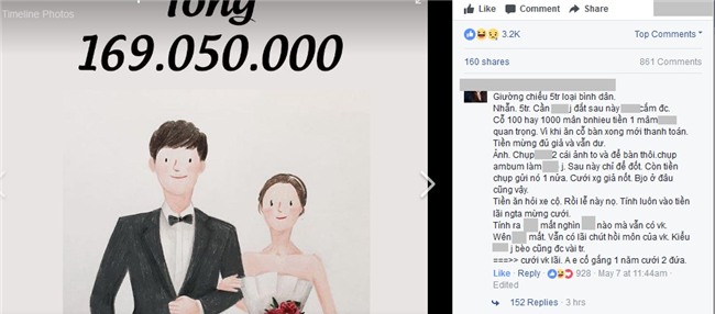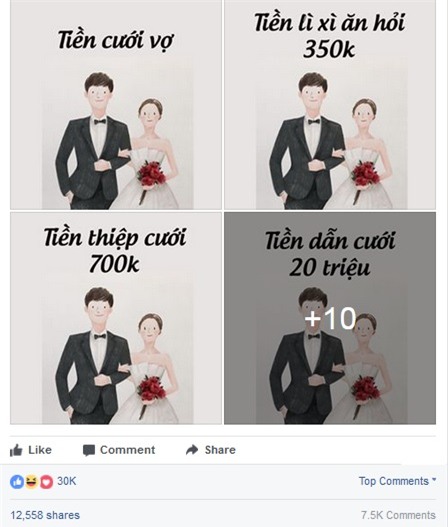 Chỉ sau hai ngày, bộ tranh đã nhận được hơn 12 ngàn lượt chia sẻ, hàng chục ngàn lượt thích cùng rất nhiều quan điểm bình luận về chi phí cưới vợ mà bộ tranh miêu tả.