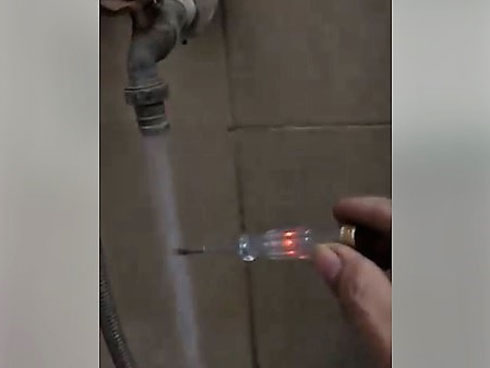 Dân mạng hiện truyền tay nhau đoạn clip dài hơn một phút, ghi lại cảnh tượng một chiếc bình nóng lạnh cũ bị rò điện, khiến đường ống dẫn, vòi và cả nước chảy ra đều mang điện.