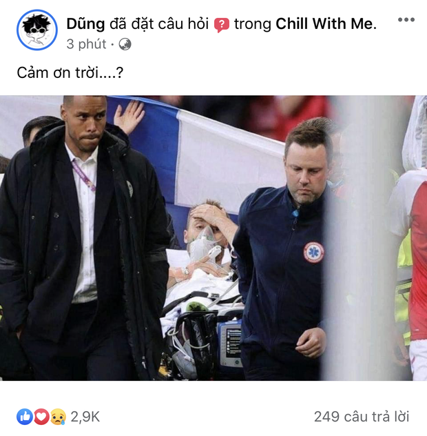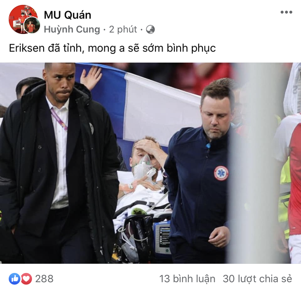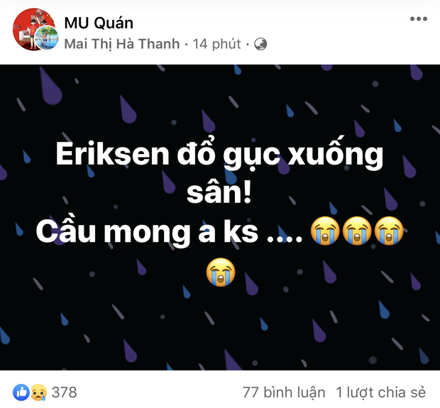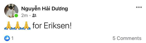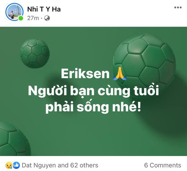 Trước đó, những dòng trạng thái, bình luận bày tỏ sự bàng hoàng, xót xa trước vụ việc của Christian Eriksen cũng xuất hiện trên MXH. Ai nấy không khỏi bất ngờ và cầu nguyện cho nam cầu thủ.