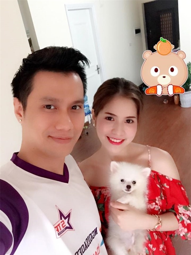 Việt Anh và Trần Hương đều có sở thích nuôi chó cưng. Cặp đôi thường dành thời gian chăm sóc chú chó cảnh.