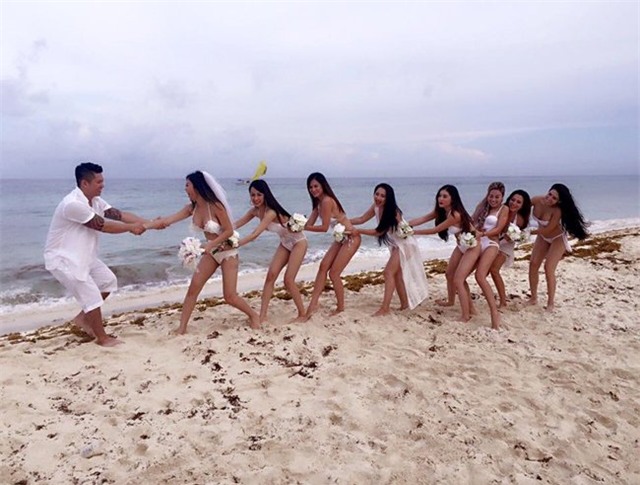Cô dâu và dàn phù dâu xinh đẹp diện bikini nóng bỏng “quậy tưng” trên bãi biển.