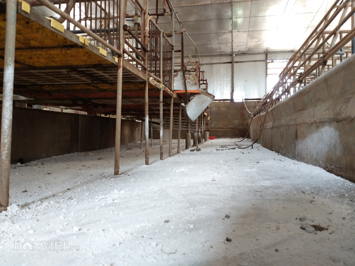 Các khu chuồng chăn nuôi lợn của người dân nay đã xơ xác, trắng xóa vôi.