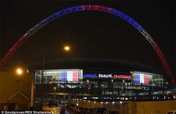 Mái vòm của sân vận động Wembley trong trận đấu nói trên sẽ được ban tổ chức đổi thành 3 màu xanh, trắng, đỏ theo màu quốc kỳ của Pháp nhằm tưởng nhớ các nạn nhân của vụ khủng bố đẫm máu đêm 13/11 vừa qua. Màn hình trên sân cũng sẽ hiển thị khẩu hiệu của nước Pháp: “Tự do-Bình đẳng-Bác ái”.