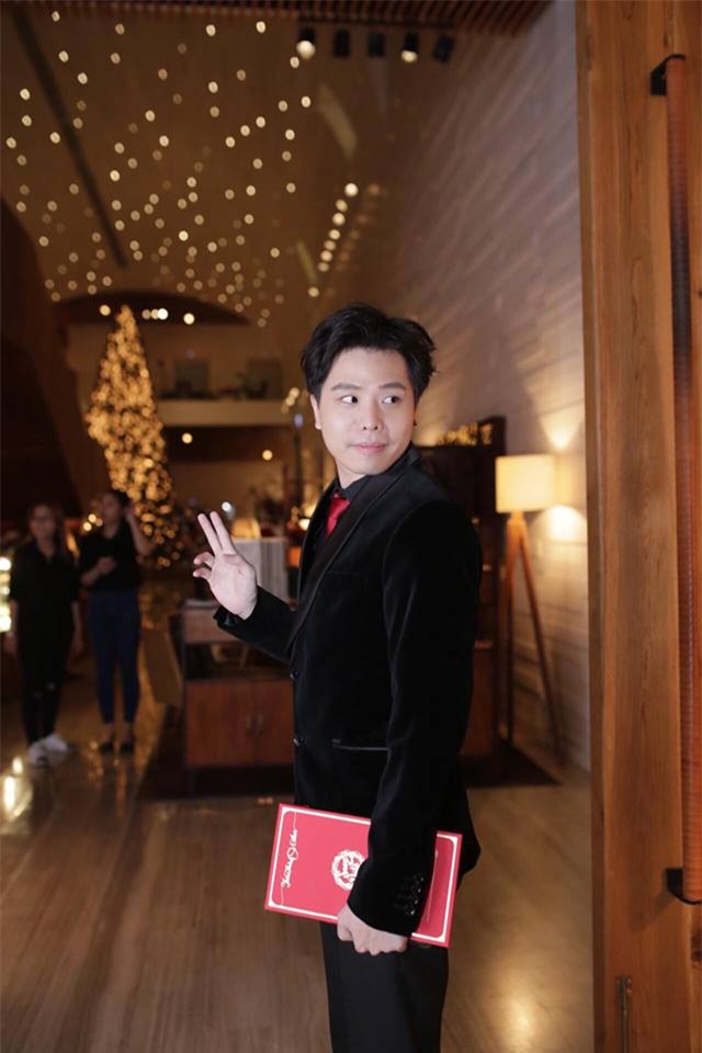 Nhạc sĩ Châu Đăng Khoa đeo kính râm đến chúc mừng ca sĩ Hari Won.