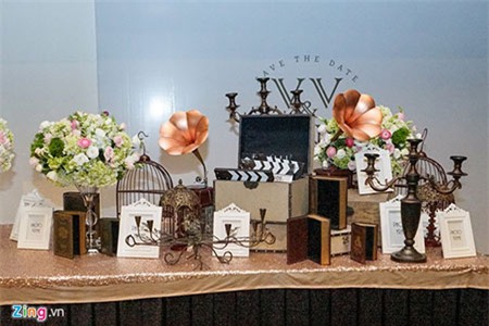 Không gian tiệc cưới của cặp đôi vàng làng phim Việt được bày trí theo phong cách điện ảnh. |