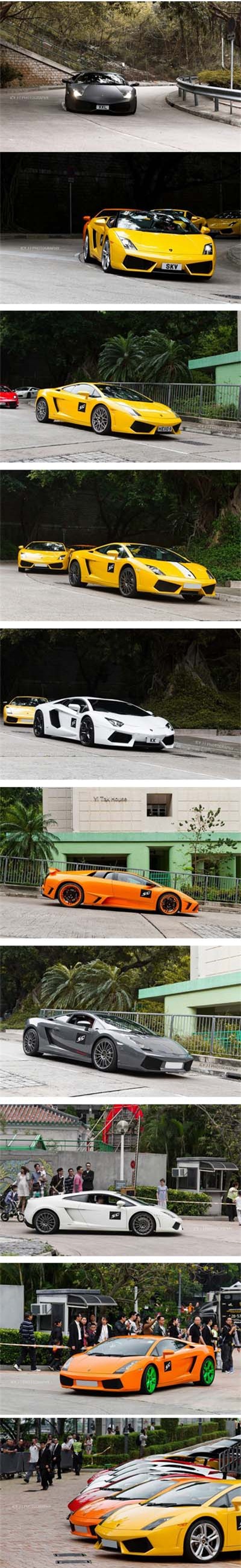 nhiều siêu xe Lamborghini với đủ các loại màu sắc và chủng loại đã cùng