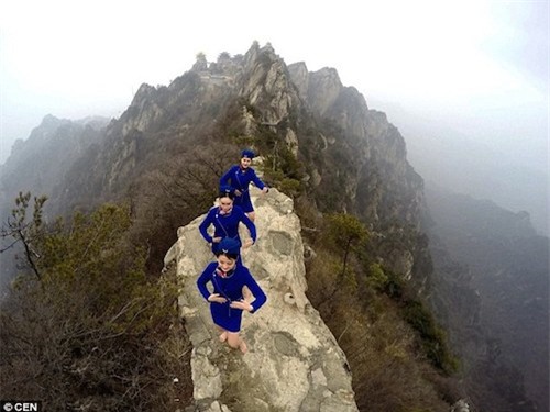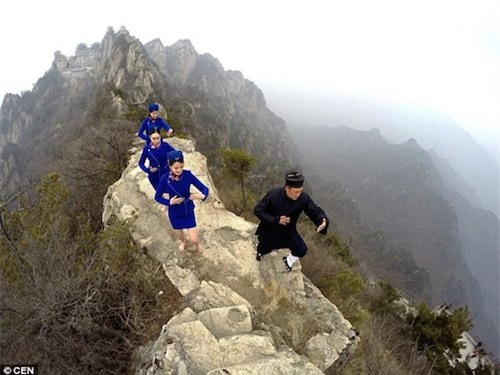 Với mục đích thúc đẩy du lịch của hãng hàng không và tôn vinh vẻ đẹp cảnh quan địa phương, các nữ tiếp viên hàng không Trung Quốc đã lên đỉnh núi Laojun nổi tiếng để biểu diễn võ thuật.
