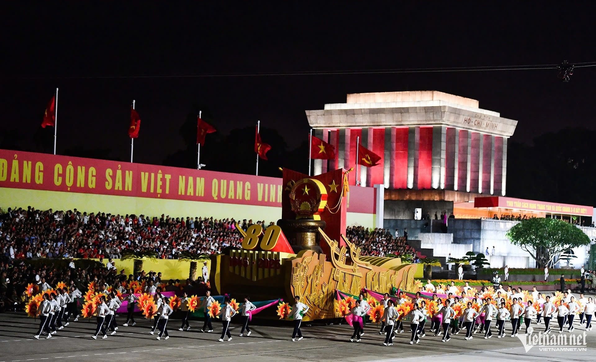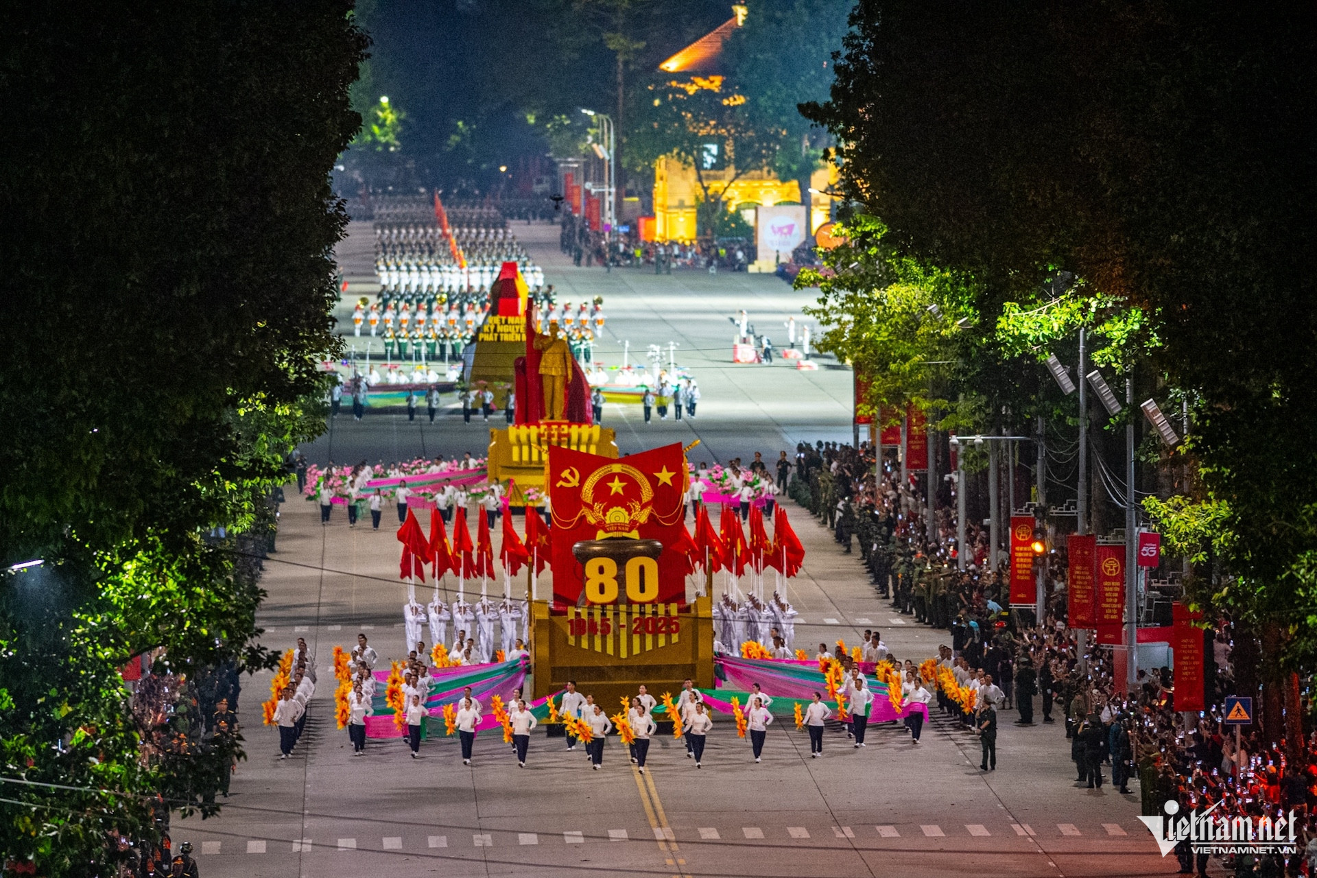 Sau khi thực hiện phần nghi lễ, lần lượt các khối cờ Đảng, cờ Tổ quốc; các xe Nghi trượng: Quốc huy, chân dung Chủ tịch Hồ Chí Minh, mô hình biểu tượng 80 năm Cách mạng Tháng Tám và Quốc khánh; các khối của Quân đội; các khối quân đội các nước: Nga, Lào, Campuchia; các khối Công an; vũ khí, khí tài; các khối diễu hành quần chúng...sẽ lần lượt qua lễ đài.