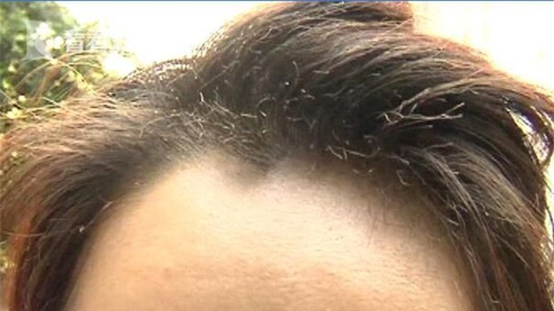 Phần tóc mái của chị Dương bị cháy sém.