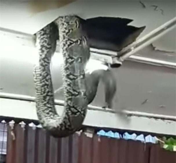 Khách hàng đã vô cùng hoảng hốt khi một con rắn khổng lồ đột nhiên rơi xuống từ trần nhà.