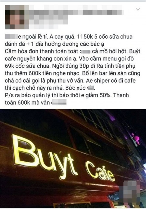 Tối 10/1, sau khi rời khỏi quán Buýt cafe (trên đường Nguyễn Khang, Cầu giấy, Hà Nội), anh Nguyễn Anh Đ. đã bức xúc đăng tải lên nhiều diễn đàn mạng xã hội thông tin về việc bị quán nà tính giá “cắt cổ”. Cụ thể, sau khi ngồi vào quán nghe nhạc được khoảng 30 phút, nhóm của anh Đ phải trả 1.150.000 đồngchỉ với 5 ly sữa chua, một đĩa hướng dương.