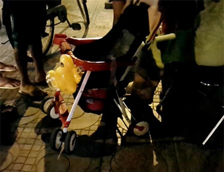 Chiếc xe đẩy mà cô gái bỏ lại cùng cháu bé trên cầu |