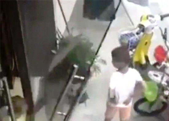 Trong đoạn video, có thể thấy một cậu bé khác đã đẩy cửa bước ra từ phía trong cửa hàng mua sắm.