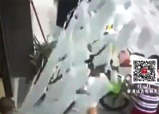 Sự việc hi hữu trên đã được ghi lại bởi máy quay an ninh nằm bên ngoài một cửa hàng mua sắm tại thành phố Quảng Châu, tỉnh Quảng Đông, Trung Quốc.