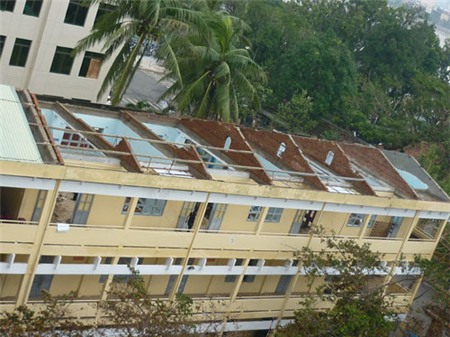 trường học bị tốc mái. Việc khắc phục cần nhiều thời gian. Học sinh miền