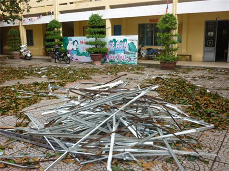 sơ bộ, trường bị hư hại năm phòng học. Ngoài ra tôn, la-phông trần,