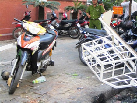 Ngay sau đó, nạn nhân được người dân đưa vào bệnh viện 115 cấp cứu. Tại hiện trường, khối sắt lớn dài gần 2 mét nằm ngay trước tòa nhà, đè lên 2 chiếc xe gắn máy. Công an phường Bến Nghé đã có mặt tại hiện trường để xử lý vụ việc.