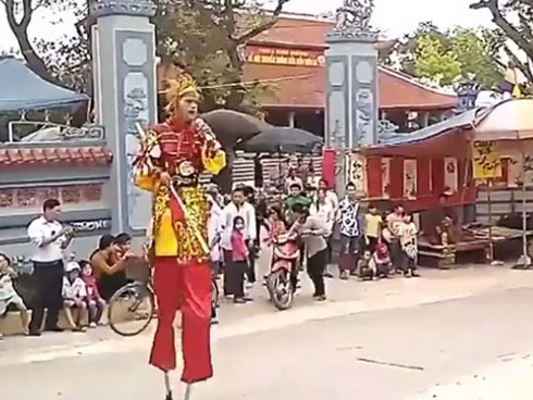 Hình ảnh "Tôn Ngộ Không" bất ngờ ngã từ độ cao 10m khiến nhiều người lớn và trẻ em hoảng sợ.