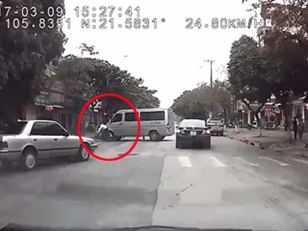 Đoạn clip ghi lại tình huống va chạm giao thông giữa nam thanh niên đi xe máy và chiếc ô tô đang sang đường được đăng tải trong chiều ngày 9/3 khiến nhiều người thót tim.