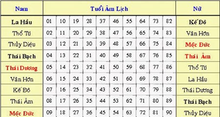 Tham khảo bảng tính sao hạn năm Giáp Ngọ |
