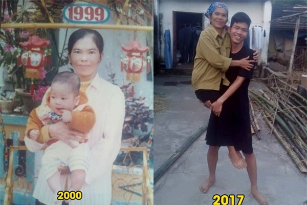 Bức ảnh "dậy thì thành công" của Thiện và mẹ.