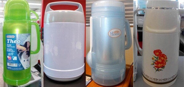 Bình nước giữ nhiệt có nắp, vỏ bên ngoài bằng nhựa, bên trong có ruột thủy tinh. Qua kiểm tra cơ quan chức năng cho biết, khoảng chống giữ vỏ bình và ruột bình có chứa sợi amiang.