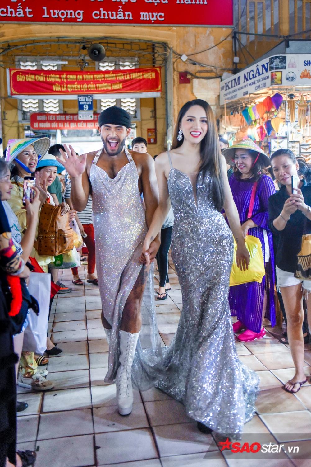 Diện đàm dạ hội lộng lẫy, Hương Giang cùng "thánh catwalk" quậy tưng bừng từ phòng gym, trung tâm thương mại cho tới chợ Bến Thành... Thật khó để phân định thắng thua khi cả hai đều gây ấn tượng bằng thần thái cuốn hút, biểu cảm thân thiện cùng những bước sải cực kỳ uyển chuyển.