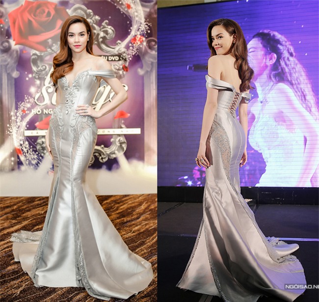 Hồ Ngọc Hà xuất hiện lộng lẫy tại buổi họp báo ra mắt DVD mới với mẫu đầm đuôi cá ánh bạc khoe vai trần và vóc dáng nuột nà.