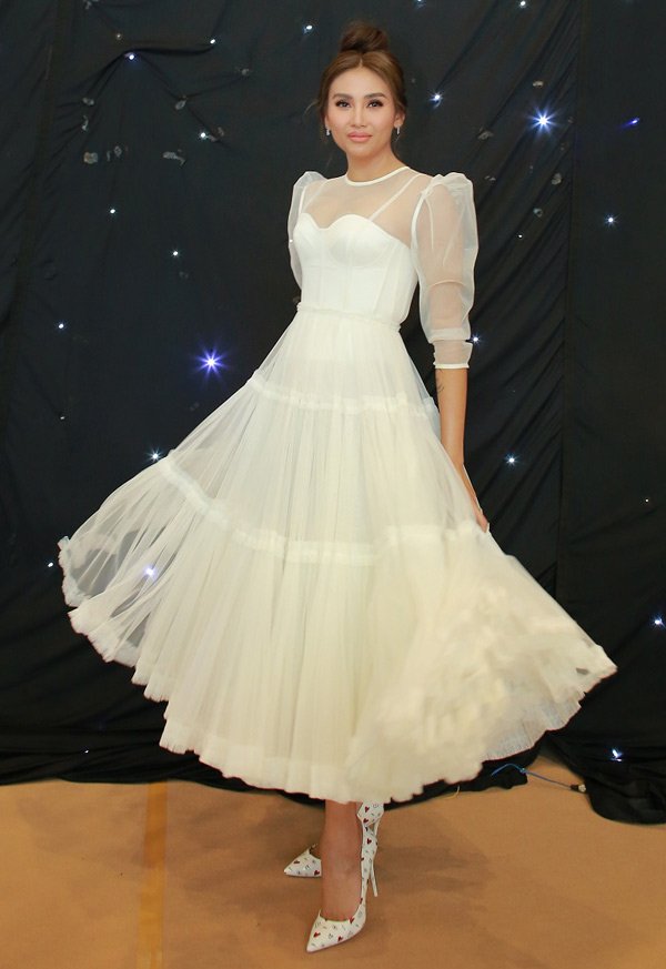 Võ Hoàng Yến gây bất ngờ với style công chúa dịu dàng khi diện đầm voan trắng xếp tầng dịu dàng cùng tone trang điểm trong veo đầy nữ tính.