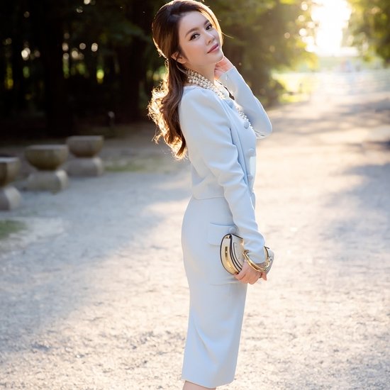 Lý Nhã Kỳ tuần này đẹp thanh lịch với trang phục xanh pastel thanh lịch, kết hợp cùng vòng cổ ngọc trai layout quý phái.