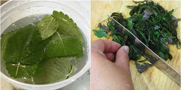 Bước 1: Dùng 2 nắm lá tía tô rửa sạch, để ráo nước.