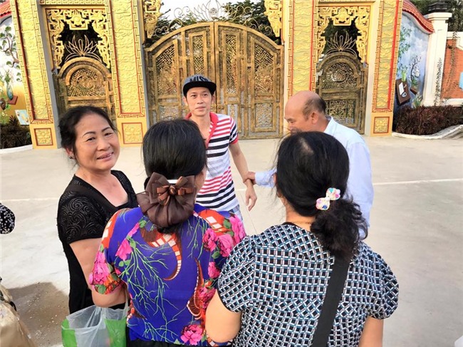 Trước đó, danh hài Hoài Linh đã có cuộc đón tiếp đoàn khách từ ngoài Bắc vào tham quan nhà thờ tổ. Bản tính gần gũi thân thiện, Hoài Linh chụp ảnh rất vui vẻ cùng đoàn khách. Tuy nhiên, bộ "quần áo tưới cây" của danh hài khiến anh bị chỉ trích thiếu chỉn chu.