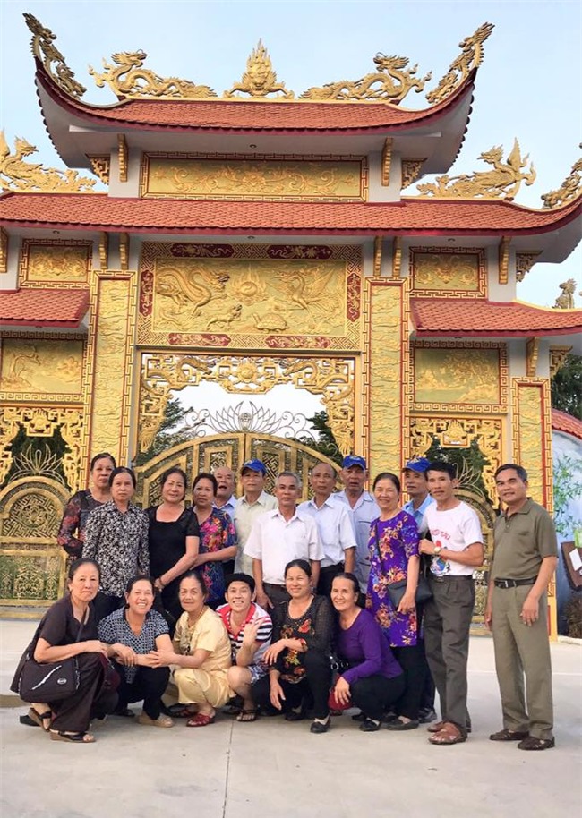 "Cám ơn các cô chú, anh, chị từ Đồng Kỵ, Bắc Ninh vào thăm đền thờ Tổ sân khấu (Tâm Linh Việt). Cháu xin gửi ảnh các cô, chú, anh, chị qua Facebook vì không có cách nào chuyển lời đến ạ. Hoài Linh cũng gửi lời xin lỗi đến cả đoàn vì cháu đang tưới cây nên quần áo không chỉnh chu để đón tiếp, mong quý vị thông cảm. Xin nhờ quý vị ở Đồng kỵ, Bắc Ninh nếu quen với các cô, các chú trong ảnh thì chuyển hộ Linh nhé. Cám ơn cả nhà", Hoài Linh chia sẻ.