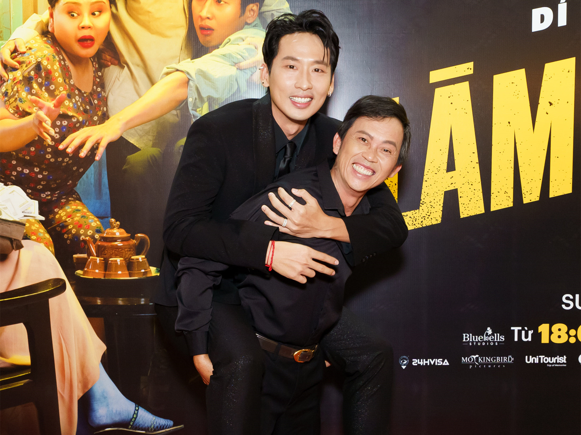 Hoài Linh diễn lại cảnh cõng Tuấn Trần. Ảnh: Nhà phát hành