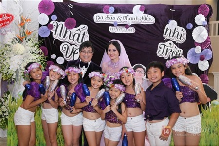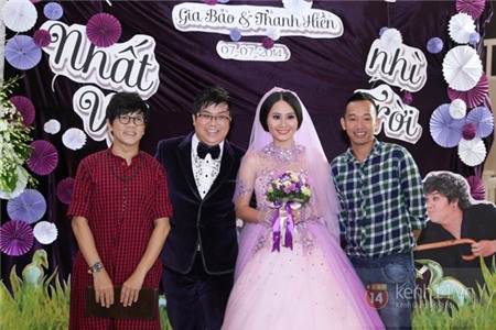 Tối qua (6/8), lễ cưới của nghệ sĩ hài Gia Bảo và diễn viên Thanh Hiền đã chính thức diễn ra tại trung tâm tiệc cưới Riverside (Q.4). Vì là một nghệ sĩ hài vui vẻ và có khá nhiều mối quan hệ nên đám cưới của cậu cháu trai danh hài Bảo Quốc có mặt khá đông các nghệ sĩ đến tham dự. Gia Bảo trang trí và cũng gợi ý các khách mời diện trang phục màu tím đến dự nên đã tạo nên một đám cưới lãng mạn nhưng không kém phần vui vẻ vì sự hoạt náo của những nghệ sĩ hài tên tuổi.