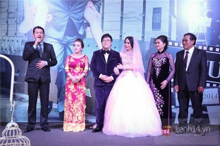 Cô dâu chú rể và phụ huynh hai bên. Nghệ sĩ Hữu Châu đại diện cho nhà trai